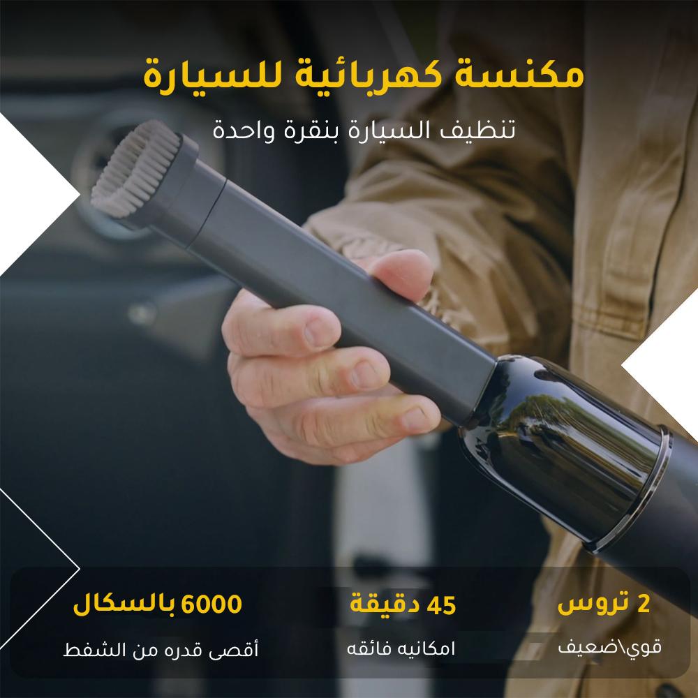 - مكنسة كهربائية قوية: توفر شفطًا قويًا بقوة 6000 باسكال لمدة تصل إلى 45 دقيقة، مما يساعدك على تنظيف السيارة بسرعة وفعالية لتوفير بيئة قيادة مرتبة ومريحة.